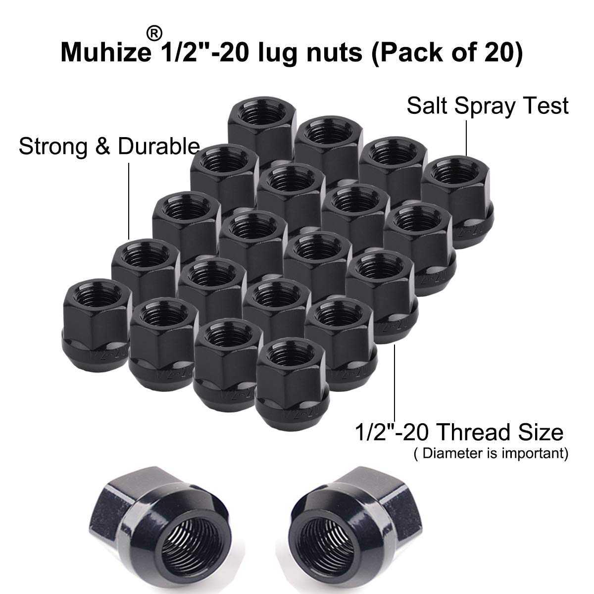 Amazon Com Muhize 20pcs Wheel Lug Nuts 1 2 X 20 Black Lug Nut Kit 2023 New Open End 6 Spline Nut 0 83inch Tall 60 Degree 3 4 Inch Hex Compatible With Lincoln Ford Automotive