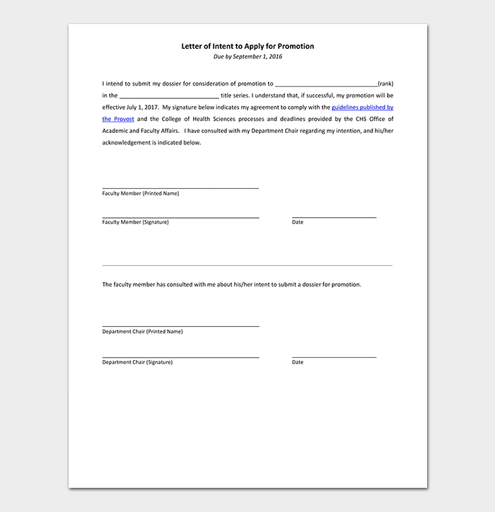 The main purpose of this form is to. Web Give reasons you know you are a strong fit for the role. Web A letter of intent for a job promotion is a formal document written by an employee to express their interest in and intention to be considered for a higher-level position within.